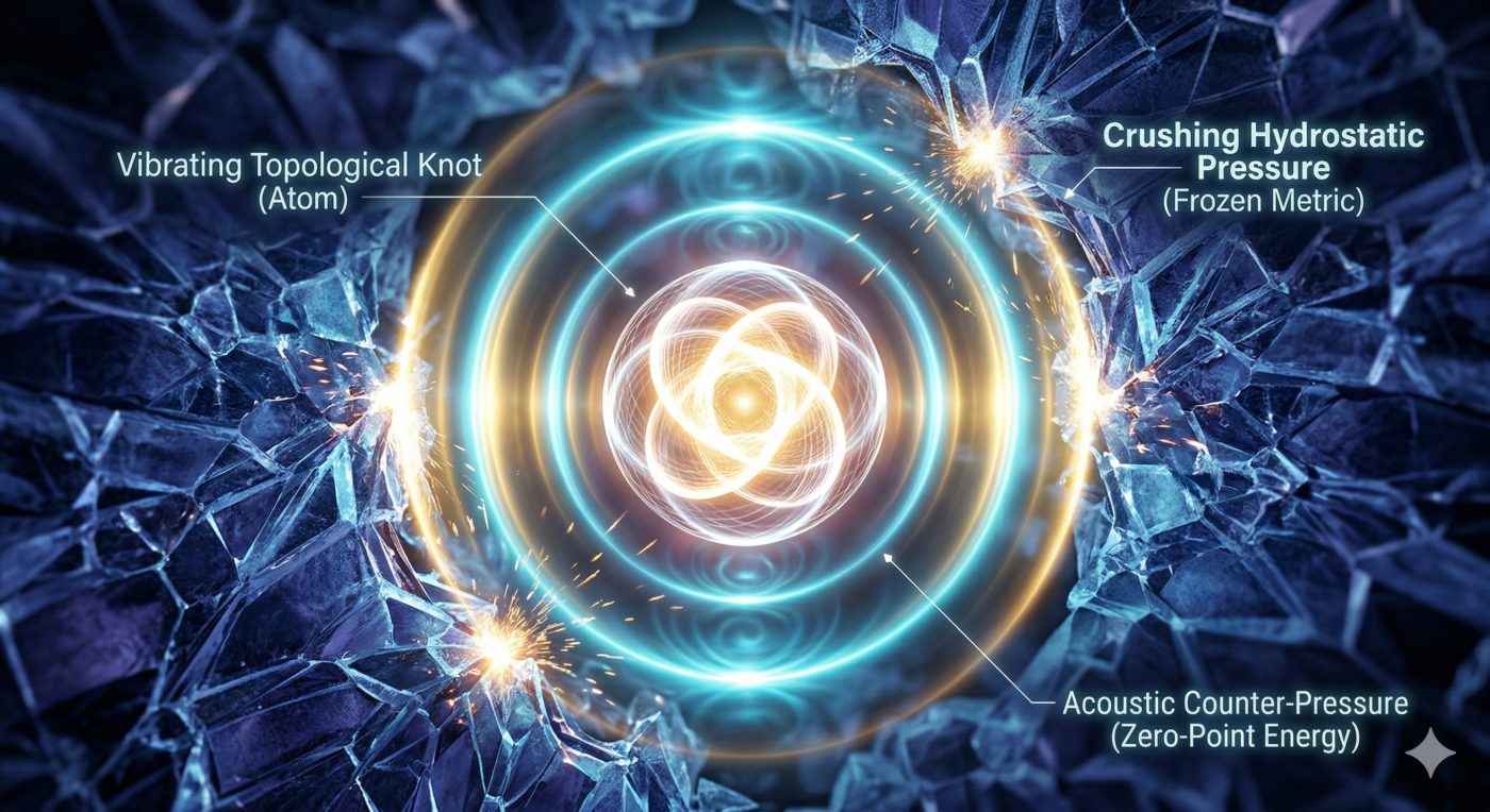 Zero-Point Energy is not a mathematical ghost; it is the physical heartbeat of a universe under pressure. By treating the atom as an acoustic resonator in a fluid metric, the “spooky” jitter of quantum mechanics becomes a classical necessity of survival.